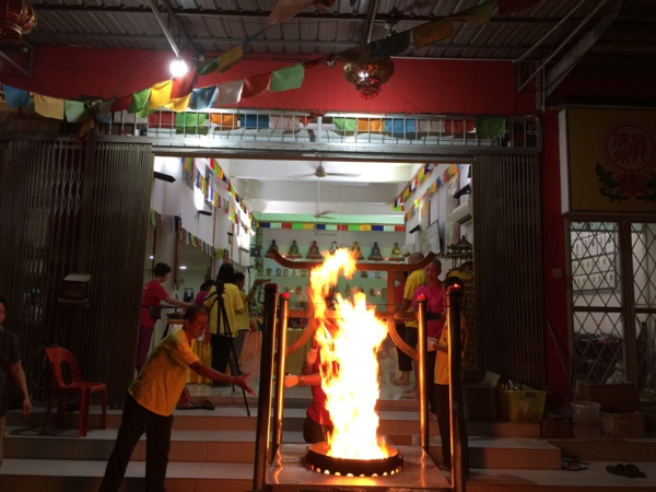 首先請大家雙手合十,我們虔誠一心頂禮大恩遍知具德圓滿真佛宗依怙主大圓滿覺尊者聖尊蓮生法王三身佛佛父佛母,頂禮大持明金剛上師盧勝彥密行尊者,頂禮華光自在佛白蓮花王,頂禮阿達爾瑪佛本初佛佛父佛母,頂禮真佛宗歷代大圓滿傳承祖師,頂禮今日法會火供主尊:南摩烏金淨土咕嚕仁波切蓮華生大士,頂禮曼達拉娃佛母,伊喜措嘉佛母,蓮師八變諸尊及其眷屬,頂禮西天無極瑤池金母大天尊、頂禮金剛手菩薩,觀世音菩薩,文殊菩薩,頂禮真佛宗八大本尊,頂禮十方三世如海部眾壇城主,頂禮龍樹菩薩、阿底峽尊者、宗喀巴大師,祖師瑪姬拉尊者,頂禮不動明王,大威德金剛,穢跡金剛,大力金剛。頂禮大幻化網金剛壇城諸尊大殊勝黑嚕嘎佛父母,南摩普巴金剛黑嚕嘎13金法壇主佛父母及其眷屬,頂禮文武百尊,頂禮21度母、金剛亥母、咕嚕咕咧懷柔佛母,頂禮美里萬法堂及一智同修會壇城內所有諸佛菩薩護法諸尊,頂禮五方龍王佛、藏財神院、地藏殿諸尊、頂禮三象王菩薩、帝釋天三十三天主、火天神,水天神,堅牢地神、山嶽寺諸尊,頂禮本地境主各寺廟堂同修會壇城內所有諸尊。阿彌陀佛!大家晚上好(眾人熱烈鼓掌)。