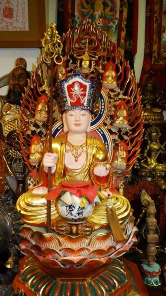 在密教中,地藏菩薩為胎藏界曼荼羅地藏院之主尊,呈菩薩形,左手持蓮花,花上有如意寶幢,右手持寶珠,坐於蓮花上。其密號為悲願金剛、與願金剛。三昧耶形為寶珠或蓮花上之幢。種子為哈字。真言有二種,一般多用「南麼三曼多勃馱喃。嗡。哈哈哈。微三摩耶。梭哈。」此咒為六部地藏長咒。印相為旗印;即六地藏根本印,陀羅尼集經卷六則以印相為法身印及法印。又金剛界曼荼羅中,南方寶生如來四親近中之金剛幢菩薩,與地藏菩薩同體異名。此外,據八大菩薩曼荼羅經所舉,地藏菩薩為八大菩薩之一。或謂地藏菩薩與觀音、勢至、龍樹等菩薩皆為阿彌陀佛之脅侍,亦合稱為阿彌陀五佛。亦有謂阿彌陀佛於因位時之法藏菩薩,與地藏菩薩為同體。那麼今天為大家開示就到此!
