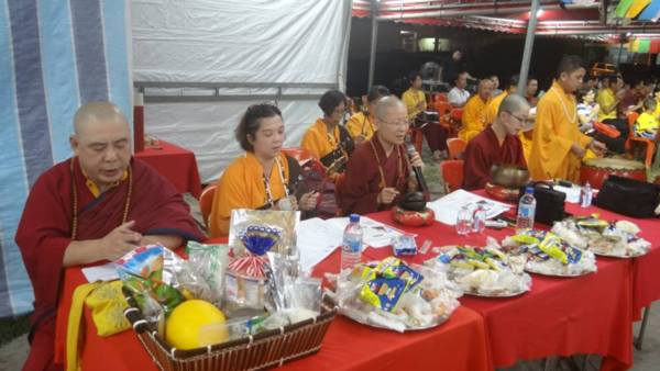 最後祝大家早日成就蓮花佛,法喜充滿!雜西德烈。阿彌陀佛。恭喜發財。萬事如意。天天快樂。心想事成。身體健康。等下我將代師為大家做上師金剛薩埵薈供羯摩還罪清淨灌頂。今天是個吉祥的日子,有壇城三寶,是清淨的地吉祥,有瑜伽男女行者,金剛上師及清淨出家大德,是人吉祥,又真佛駐世,是法吉祥!等下做上師金剛薩埵薈供羯摩還罪清淨灌頂是處吉祥,之後,記得借由此機會要供養三寶上師及法師,在此吉祥天時地利人合法圓滿,做供養三寶能快速增加福報資量。好開始灌頂!(大家在法會咒音中接受上師金剛薩埵薈供羯摩還罪清淨灌頂充滿法喜)
