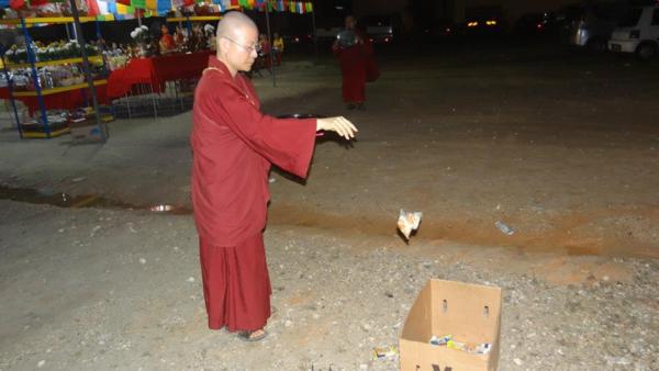 最後,重要的是我回到新加坡,由新加坡再帶百多公斤進馬來西亞,各位有沒有辦法,隨便打開一箱你都要給馬來海關錢了,告訴各位,一路通關,沒有人攔(眾人熱烈鼓掌),為什麼?因為我的信念相信根本上師的加持,相信護法的擁戴,為什麼法會都要供堅牢地神,因為堅牢地神從頭到尾幫忙(眾人鼓掌),我在尼泊爾師尊連續入夢幾次,其中一場就是傳堅牢地神的法,師尊親自誦堅牢地神的咒,所以我知道說麻煩來了,趕快持誦堅牢地神的咒,持了以後,過關過關過關,大家要記住根本上師的加持力不可思議啊(眾人熱烈鼓掌),你相信祂可以承辦就對了,我今天就是一個真正的見證,有誰能夠帶180多公斤的貨品,一路從尼泊爾到新加坡到馬來西亞,要過幾個國家,要過關斬將,不可能的啊,英文叫做impossible,根本不可能嘛,但是我做到了,為什麼做到?相信你的傳承,相信你的根本上師就