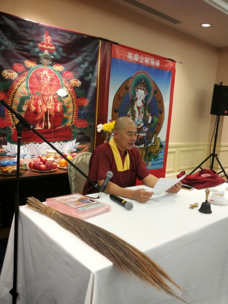 蓮顏法師認識我的時候,我是什麼都沒有,但是我知道,真佛密法可以修出有,從沒有到有,我靠自己,我學法,山醫命卜相,樣樣會也樣樣不精,跑山頭挖挖墳墓,撿撿骨頭,就是這樣,那做做煙供粉,師尊傳法就配合師尊傳法,這個就是敬師嘛,你學法就是養活自己,還可以用在菩提事業,還可以供養師父、學法,我一路上都是這樣的,我是不帶財,財全部是用在公,用在供養師尊,本來就不是我的,所以我只請法,有了法才可以幫助眾生,那麼投資那麼多了,現在應該是回收一點的時候啦,在座的各位,你們要的話,趕快跟法師聯絡,看你們的家產怎麼電匯過來(眾人笑),房子全部都過戶,那這一生我就開始教你了,你光了我有了,我就會教你了,所以人就是要懂得,這一生就是要活得精彩,不然你白白過了,縱然給你幾十棟房子又如何,幾百千又如何,幾萬千又如何,生不帶來死不帶去,只有業隨身啊,你那時候想說,不然上師在我旁邊,幫我做中陰遷識,那也是要有福報啊,要我在啊,有時候要我接引,真的要福報,所以我們今天修行,一個人的生命,如果沒有放光放亮照亮別人,就算活了數百歲、數千歲,也等於根本是沒活過。如一個人的生命,只要放大光明一次,就算是流星一樣的一閃即逝,但他永遠是世上的明燈。聖尊蓮生法王就是我們永遠的世上明燈,祂這一生祂也犧牲自己的自由,犧牲祂自己的時間,祂完全把祂奉獻給我們,這是佛的慈悲啊,也是我們永遠的真佛依怙主啊!今天我代大恩根本金剛上師蓮生法王講授「延壽法」,希望大家能當個有益世間眾生的人,一個真正的行者。