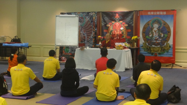 所以我們行者假如認為自己有足夠的能力,則好好的修正行、修拙火、修幻觀、修夢觀、修淨光。若是你想走捷徑的話,怕自己不能夠往生,那你就要快點的修破瓦法及中陰聞教得度密法,最起碼你要先修這兩個法,但是修這兩個法的基礎在哪裡,在寶瓶氣拙火,這個心要口訣,那再加上還淨法,幫助自己淨除業障,那你這一生就沒有白來的了,這全世界有相的物質,不管是金銀財寶也好,都不能跟這些比啊,因為都是生不帶來死不帶去,這樣你們了解嗎?所以你要修這個法,其實你也不要想樂智上師老是講說要大供養,這個法本來就是要大供養,用一輩子的修行時間,用一輩子付出的供養,包括自己的心得累積,心要口訣,如果今天給你傳法,不告訴你心要口訣,你要修很久啊,我是讓你更快速的,把我的經驗告訴你,就是這樣一二三,三二一,又加上師尊直接口授傳承的法流,教導了這些重要的口訣,你是不是會更快,你少了幾輩子的加行摸索啊,就算讓你看遍所有的經典又如何,你還是得不到那些東西嘛,對你的幫助還是有限啊,那是不是回去以後,該賣房子的就賣房子,又回到原點(上師笑),老婆啊就請人家幫你照顧,孩子嘛就請人家幫你照顧,錢財嘛就上師幫你保管,要做到這樣呀(大家笑)!那麼請法之前的前提,就是你要先找到真正如法的傳承金剛上師教授指導,他才有辦法指導你這一些口訣,不是說師尊灌過就好了喔,灌過你還要去修嘛,你要去證明這個法,不然你怎麼講它咧,所以我這十幾年來,我在外面開示,我都是用我的經驗來談,它就是法,其實就是經驗累積出來的,修行告訴你這些答案,告訴你這些智慧,這個在其它的地方是看不到的,祖師能夠講,是因為這個就是他的修行,所以他可以講,你沒有經過修行經過閉關,你怎麼去開悟佛法,真正了解原來它是這樣,那麼你修了以後,會有什麼境界,會有什麼情況,要說個明白啊,你不要自己看了書,就講別人講的話,那如果要這樣,那你們就自己看書就好了啊,我還來聽你說佛說什麼經喔,我回家自己看就好了,我要聽的是你修行的正見,你真正的心要口訣嘛,我不是要來聽你講佛經的,講佛經你就自己看就好,幹嘛要請上師來教呢,吃飽沒事幹幹嘛,上師,我不是要聽神通,上師,我不是要聽你講佛經,你能不能告訴我怎麼修行,師尊說這個,那是師尊說,你要知道喔,你到外面去,這些仁波切法王若是結上緣,他有時候會問你喔,你主修什麼?你回答我是主修中陰身超度,那什麼是中陰身超度?你不要說我們師尊說….,他會告訴你,我不是要聽你們師尊說,我要聽你說啊,那你怎麼回答,你今天要是沒有修行的經驗,你無法回答他的。