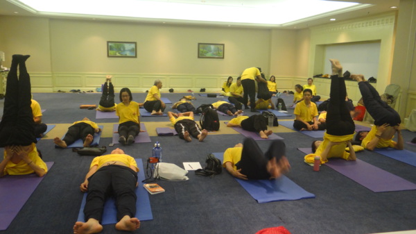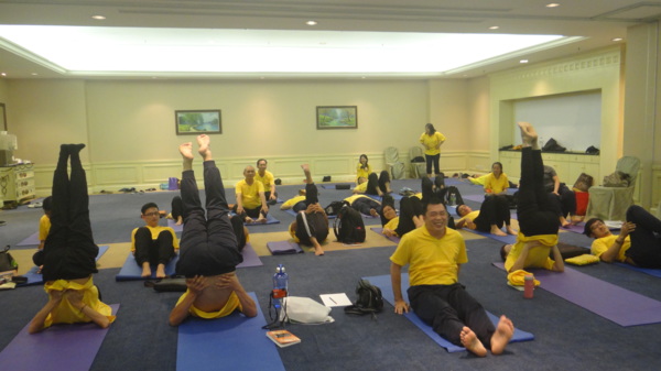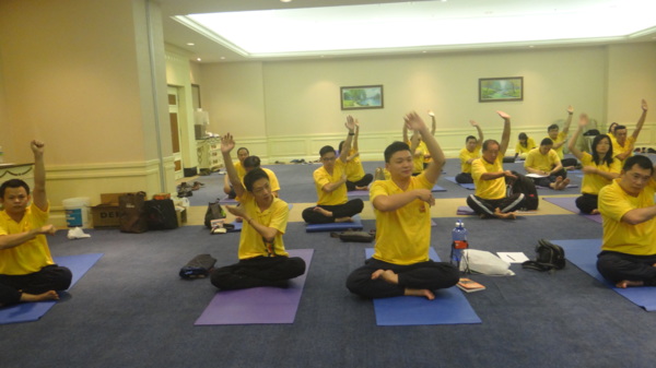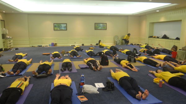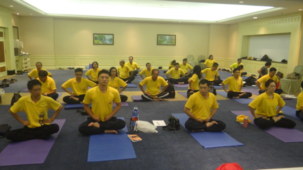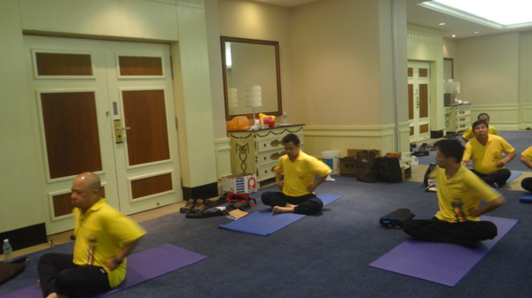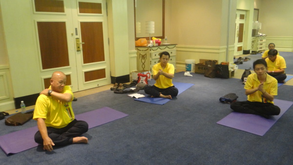 首先要練七重輪之前,一樣身體要抖動,要拉拉筋骨,身體擺動,法師早上不是有教你們一些拉筋的動作嘛,你們稍微拉一下,讓身體稍微溫暖一下,才不容易抽筋,也才不容易受傷,平時就是在訓練之前,拉拉筋骨鬆鬆筋骨,這樣你才有辦法練七重輪!什麼是七重輪運動?七重輪就是人體瑜珈最重要的七個部位。七重輪包括頂輪、天心輪(眉心輪)、喉輪、心輪、臍輪、生殖輪、海底輪。共計七個輪脈,而每個輪脈各有神經叢,每個神經叢又個個不一,所以聖尊大圓滿覺蓮生活佛尊者,特別將歷代祖師密傳之大手印技法流傳下來。這裡面有瑜珈秘密功法,大樂技法,白菩提技法,有『降、提、持、散』口訣,有熱能瑜珈功法,如何使氣通脈,成就二灌三法。師尊蓮生法王也一直重複再提,所有得此功法修行的行者,都能注重傳承、敬師、重法、實修、守事師法五十頌,密教根本十四大戒,行者的心要與道合與光合,就能成就光明瑜珈相應法。瑜珈的修持重點在於依「止」起「觀」,如果在整個修持過程中,行者沒有得到真正的「止」,也就不可能得到真正的「觀」。所以一般來說昏沈較重的要多修「觀」,如外緣較亂的就要多修「止」。「止觀」双運所緣有種種不同,行者如欲修「止」即意守鼻端、或臍下等處,或數出入息,或持念名號等等,將意念集中一點。行者若是修「觀」,專為對治貪欲則修「不淨觀」,對治嗔恚則修「慈愍觀」,對治散亂則修「數息觀」等等。從初修「止」到得「止」的過程,「瑜珈」稱為「九止觀住心雙運」。此處你們可上一智同修會部落格看密教瑜珈金剛拳文章;或是看我在馬來西亞怡保上的禪定九止觀住心雙運禪定課程文章。此處是經根本金剛上師蓮生法王認可我代師講授禪定九次第課程!好,現回主題。