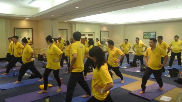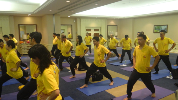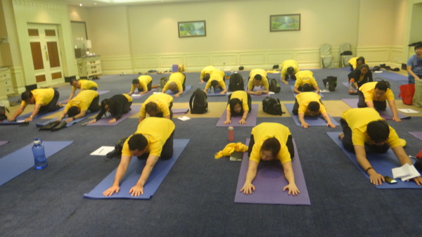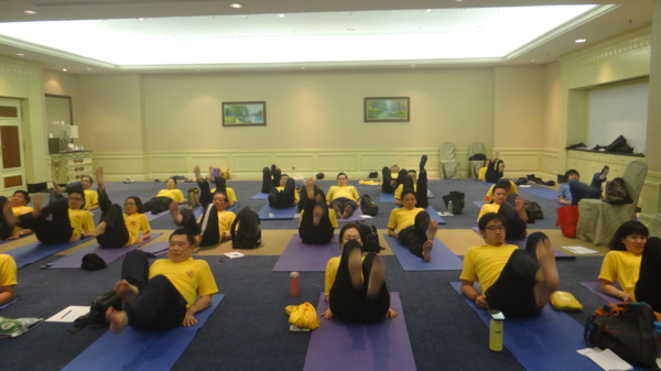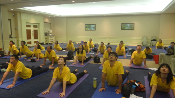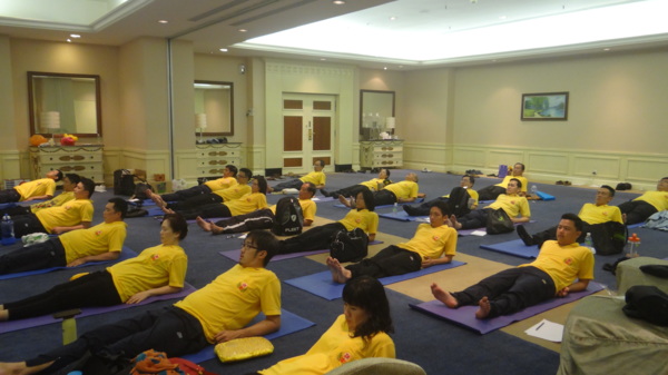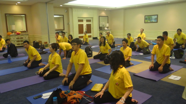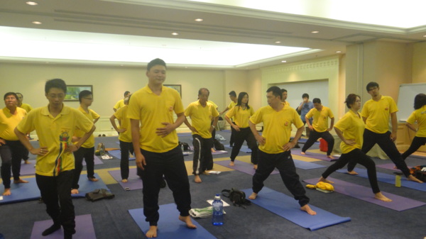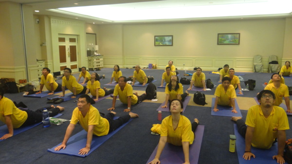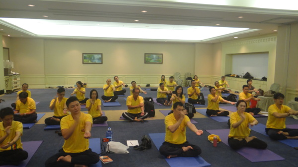 剛剛大家有休息到嗎,今天中午吃的非常豐盛,早上我是吃了一點,那麼中午同門的熱情,每個人一盤,變成我吃最多,吃到這個肚子真脹啊,怎麼這麼好,那今天早上我們談到七重輪運動的拍擊力法,現在我來講解第五式光明坐法!