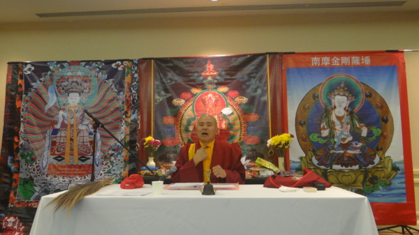 你猛吸氣會提住氣,你用握固印的時候,不是只有握而已喔,要用力捏,拳頭要向下壓,一壓身體拱起來,向上看,這個就是修練的口訣功法之一啊,懂嗎,沒有講你根本不會,你就想握拳、日月朝天、舌抵上顎、提肛,好像很簡單喔,我告訴你,還是要示範的,我現在跟你們講的就是方法了(眾人熱烈鼓掌),其它的要學,還是要提錢來見啦,說穿了就是這樣,我什麼都不會,我只會一樣,修行,還有口訣法,要跟我分享,我也很喜歡啊,不過,不可空求,我一貧如洗啊,這麼多年都是在請法,不然我不用貸款了,這樣你們知道了嗎,我那為什麼現在一智同修會都還是在貸款,因為請法先嘛,法比較重要,法王在,怎麼可以不去請法,尤其是我們弘法人員,那請了法去修,剛好來教育大家,告訴大家怎麼修練,你說請師尊跟你講那些法,教你口訣嘛,坐一整天陪你們嗎,不可能啦,各位了解嗎,法還是要教授,還是要講解,不然你灌頂也是沒有用的!所以一般來講,你只要壓住喉結,內縮,氣往上提,你的氣順著這股勢力把它提上來,那麼提上來的過程裡面,喉結一壓,這一壓就好像吸管,你把那個頭壓住,水就不會露出去,這中間喉結一壓真的就不會漏了嗎?這裡面也是有功法的,壓喉結的原理就是要誏你明點氣不漏失這樣,但壓要壓多久呢,壓久一點啊,你不要壓一下,好像沒事了,一放,哇,再重來,重新學,這些都是功法,平時可以訓練七重輪,然後配合這個方法,是一種訓練啦,但是記住,所有的法都是要教授的,要示範要教授的!要來請法,不然也不容易成,這須要口訣竅門,其實今天我講了很多口訣方法,只是有些名稱你們不了解那是什麼;不然方法都在裡面。