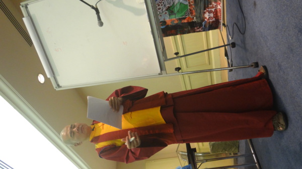 今天你們得到太多太多太多口訣了…..,不過沒有關係,好好的修,想要更進一步,就是要來請法,所以你沒有辦法修靈熱法,你一定要修「九節佛風」,因為九節佛風作到最後跟「靈熱法」是相通的。它也是三個脈到丹田,這樣子運用的話,將來你的氣成熟了就自然會走中脈一直到頂。修九節佛風是到上面不通再下來,修拙火法是一定要修通它,直接開頂,直接沖頂,沖了頂以後,你的種子字跟本尊相應再降臨,這個是很重要的口訣喔,但是一定要傳法灌頂,然後告訴你怎麼做,這個變化很重要的,九節佛風也是完全式呼吸,那麼利用觀想,九節佛風也可以做得到,靈熱法本來就是跟九佛風互相通的。你呼吸也是順著左右脈下去,到了丹田的時候,吹這個「阿」的半字(左半邊的鉤),使它變成鮮紅色,然後吐出氣也是從中脈,中脈頂門不通,再回到左右脈再回來,一樣是九節佛風,也是一個「完全呼吸」的觀想。每天都要這樣子的作六大成就法之一的靈熱法。很多的法和六大成就法,都是從「靈熱法」開始修的,沒有「靈熱法」就沒有「六大成就法」,就沒有真佛大手印八大成就法,所有法的基礎都是來自靈熱拙火法,但是這裡面一定要配合瑜珈功法,降提持散,提明點過須彌山,修開頂法,這都是一氣呵成的,它是互通的,拆開是很多的法,慢慢的有的法你都修到有些感應了,你再把它組合起來,不得了啊,你們知道變型金剛嗎,有更大的變型金剛,就是怪獸,有怪獸有怪獸…那首歌就會出現,因為它的power力量又更大了,老虎是不是很凶,如果老虎長翅膀呢,更厲害對不對,這個就是修行的方法。你假如能夠拿到「靈熱法的口訣」,其實你們今天聽到這個法,都應該去閉關才對,得到這個口訣以後,你們就好好的去閉關去實修去演練,把你的九節佛風,你的寶瓶氣,先把火練出來,再依照我告訴你們的口授的要訣,去修開頂,修夢觀,修拙火,很快的,要成就不是困難啦,只要照這樣去修很快就能夠成就了,所以趕快去閉關修行,在關房裹面修這個法,你就能夠修到三脈七輪整個都通。你把所有的靈熱走遍全身的時候,你就會得到光明,淨光就成就了、旁邊有彩虹,你身體周圍有彩虹就有「淨光成就」。但在這其中會有很多的幻境出現,因為火本身顫動會有很多的幻境出現。這點大家要明白!但不管你們現是否了解,在修我現在為大家講解的法之前,最好先受灌頂,這樣才會有傳承法流,也才能容易相應。
