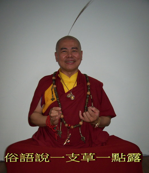 剛開始你要插小一點、短短的就好,因為太長的會倒下去,如果你開得不夠的話,那個草也插不住,插得住表示你的層次很高,目前我還沒有看過人家插那麼高的(眾人鼓掌),那麼在未有此等情況之前,只要閉關精進修二十一至四十九日你一定能夠開頂,為什麼說一定能夠,因為只要你知道這個法的口訣,你每天依照這個去觀想、去修,就算你今天沒有什麼修行,你都還是會有感應的現象,那麼我為什麼會講這個法?第一,我母親年紀也大了,快要變妖怪了,又加上旁邊有很多護持的老菩薩,他們都很有心,年紀也都有了,這個法是針對一般在旁邊護持的眾,為了幫助他們才會講的法,人家是長時間的護持,做很多的供養,但是我們這一世因為因緣太殊勝了,我是覺得我們是第一世啦,那我第二世我會不會這麼雞婆 ,我也不知道,但是第一世我們要有很多人來證明真佛密法,這是一個重點!大家都能夠告訴你旁邊的眷屬:「ㄟ我可能後天就要走了,那你要去哪裏?我要去遠足、去旅行,那你要去哪一個國家,我要到極樂世界,你不要黑白講,ㄟ我真的要到極樂世界啊,我那個都已經講好了,我前幾天也去打點好了,我只是現在跟你們講一講,因為我這兩天保險費就完了,可以領保險費了,我領到我才要往生。」