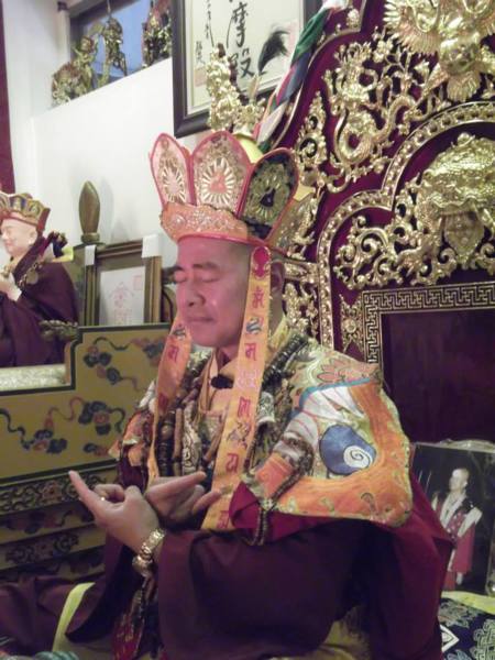 現在請大家虔敬合掌,我們一心祈請大恩根本金剛上師蓮生活佛,真佛大圓滿歷代祖師,一心祈請金剛手菩薩,蓮花生大士。真佛大圓滿傳承弟子,蓮花釋樂智金剛上師代師口傳喇呼拉法義!我們今天法會的主尊是喇呼拉,此尊護法神是比較少公開講授;那是因為喇呼拉是最嚴厲之護法神,主降伏法成就。本身有很大的法力,祂對真正的大瑜伽行者,大加護持。對破壞三寶的人,能馬上殺戮懲戒。其誓句凡毀害大瑜伽行者,正法者,即殺無赦。就是因為此護法神太嚴厲了,所以各教法王仁波切才少公開講授,此尊護法神大都是密修,我知道有些法王仁波切私下亦以喇呼拉為密供護法。