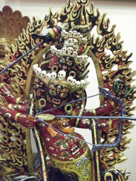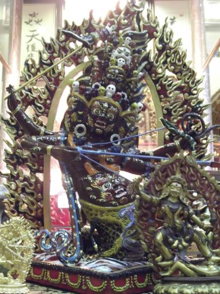 那麼我記得在很早很早以前,那時候有人要侵犯西藏,不知道是蒙古軍還是哪裡的大軍啊,那時候藏族大家就很緊張了,這些王公貴族大臣啊,還有喇嘛大家都緊張了,後來他們去找一位成就者,一位大圓滿的成就者,修行很高的一位尊者,他們去拜託他,因為大家知道他法力無邊啊,他們說請尊者幫忙啊,能不能讓他們不要過來啊,因為我們的兵力一定輸人家的,結果那位尊者,這也是真實的故事喔,他就修喇呼拉的法,他就開始供養祂佈壇,穿上人骨袈裟,準備一些降伏法的工具,那他知道這些兵在哪裡,他就開始修法,結果他開始修法的時候,七天之後,這些兵到了半中間,開始颳起大風,下大雪,下冰雹,他們沒有辦法前進了,因為風雪太大了,然後突然間主帥暴斃了,就死了,所以他們就趕快退,因為沒辦法打了嘛,所以就退走了,這是一個故事,曾經發生過的故事,因為我是法界特派記者!