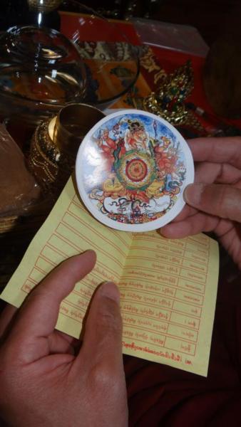 裝藏物品也要包含本尊三象王財神十二臂羯摩總持的加持經文跟祂的曼陀羅,還要放八吉祥曼陀羅,財神總持曼陀羅,八駿馬財神總持曼陀羅,這裡面還有特別加持的財神煙供粉,這是供養財神的煙供粉,讓本尊歡喜,供奉者能感應迅速、福報聚增,更別忘了要放置財神的法相,這些都是要裝藏在裡面的!