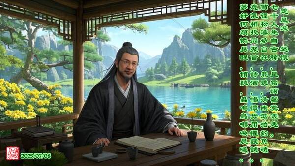 【定風波】 述懷 七十人生自古稀,星霜兩鬢莫嗟悲。 菊徑松濤多自在,閑愛,清幽澹泊釣魚磯。 意氣相投同聚首,詩酒,暢懷毋用懼讒譏。 夢好何須憐易醒,傾聽,蟲鳴鳥囀喚晨曦。 圖/詞:逸飛 語譯: 人...