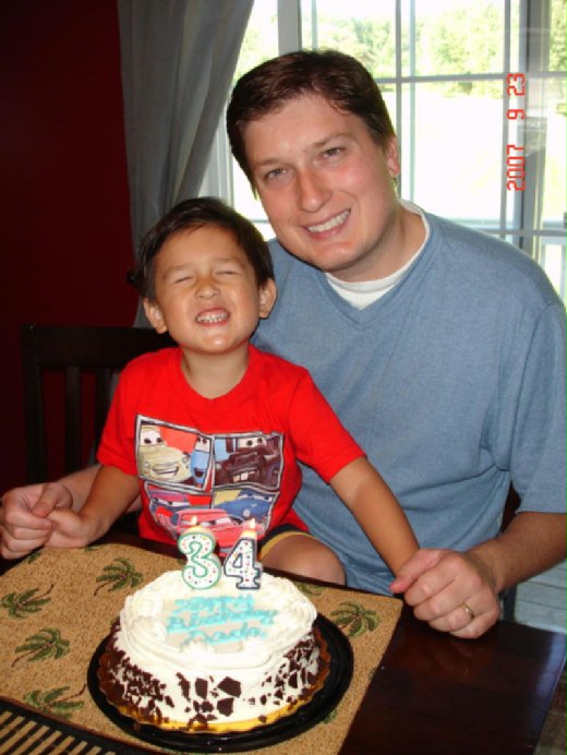 老公生日那天,我們一家三口自己慶祝,hayden和我一起為他唱中英文的生日快樂歌,遠在加州的一對好友夫婦,也特地打電話來道賀,這對好友夫婦,每年只要是我生日或老公生日,一定記得來電,叫老公好感動,因為他的家人,除了爸爸外,居然沒有一個兄弟打電話來祝他生日快樂的,偏偏每年不論是哪一個哥哥生日,老公都會打電話去道賀,等到老公自己生日到了,這些哥哥卻連一通電話也沒有.....可憐的老公,情何以堪啊,發誓以後再也不當好人.....