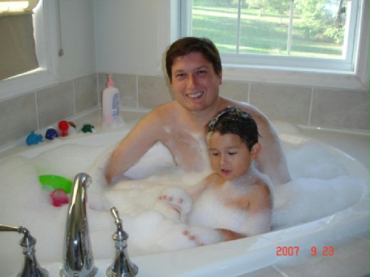 也罷,忘了這些無情無意的親人,老公生日照樣過的很愉快,因為可愛的hayden,跟他一起洗了個按摩泡泡浴,一大一小兩個男人在浴缸裏玩的不亦樂乎,這天晚上,老公跟我說,有老婆和兒子在身邊,他過了一個很快樂的生日!