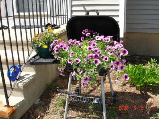 昨天是在這間房子"定居"滿週年紀念,不過去年因為懷孕所以無法弄花花草草的,今年在電視節目上看到有設計師把舊的BBQ拿來種花,馬上把這招學起來,嘿嘿,看起來還挺不錯的喔!