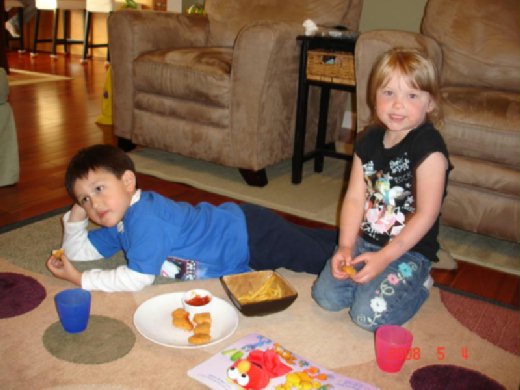圖片裏是Hayden的小女友麥姬,兩個人一起坐在客廳地上吃炸雞塊看電視,兩小無猜的樣子粉Q說!
