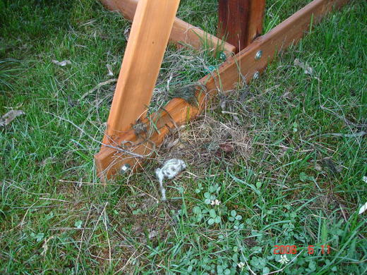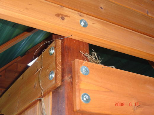 不是我心地不善良,這種鄉下地方外面那麼多樹,隨便挑一棵都可以築巢,為何你偏偏就要選在playset裏面呢?想到我們一家再兩星期就回台灣了,到時playset真變成了鳥窩,那可怎麼辦才好?
