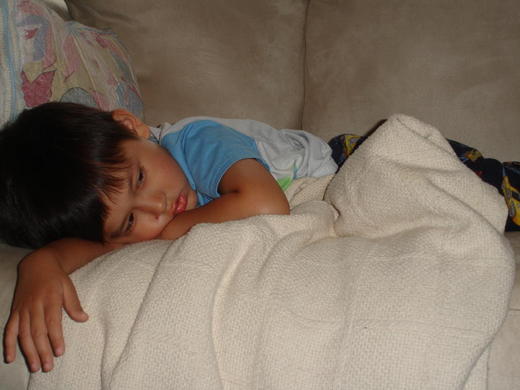 隔天,Hayden還是懶懶的,一副無精打采的樣子,一整天就躺在沙發上動也不動,叫他去玩也不想,想說,是不是該帶他去看醫生啊?於是先量了量體溫,九十八度,好像有點退燒耶.....所以,就打消了主意。