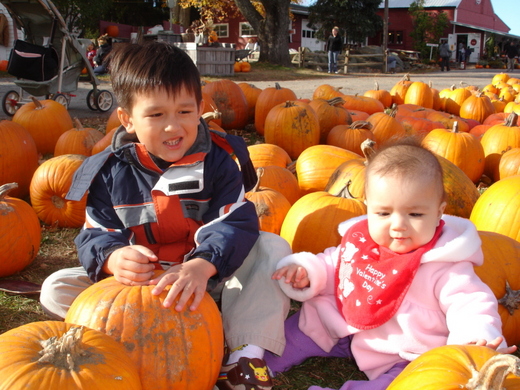 這一下午,玩的最爽的就是Hayden了,不但選南瓜、挖馬鈴薯、採蘋果,還去坐HayRide,也跑去餵已經吃得很飽、對你的飼料完全不屑的農場動物,至於Hana嘛,因為還不會走路,加上天氣又有點冷,所以只能坐在她的車車裏、全身包的緊緊的用看的,不要嫉妒喔Hana,明年妳也可以跟大家一起玩了啦!