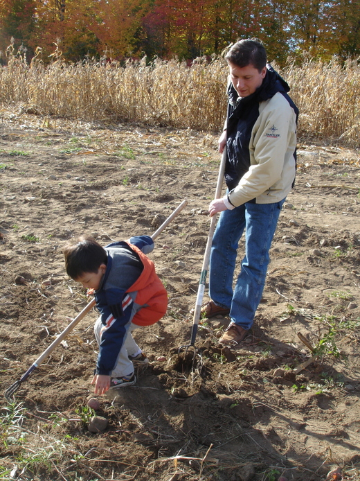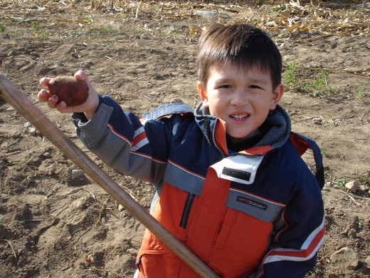 沒南瓜可採沒關係,老公看到招牌寫說,還有馬鈴薯挖挖樂,自己拿工具去挖,一磅五十分錢,ㄟ...這可好玩了,老公、Hayden和老媽子輪番拿著鋤子在土裏尋寶,每挖到一顆就開心的不得了,那種親手把馬鈴薯從土裏翻出來,手上拿著滿是泥土的戰利品的感覺,真的是好有成就感啊!