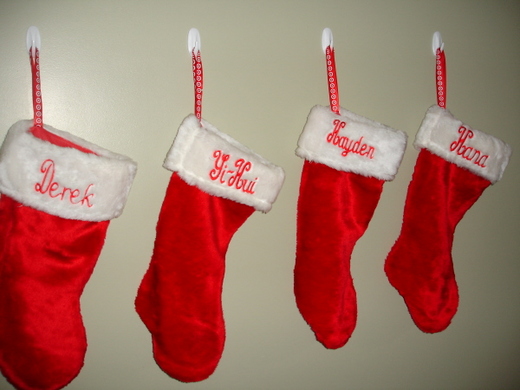 去年在ebay上買的,妳就查christmas stocking,應該會出現專門幫妳鏽名字的賣主,我記得那時買一隻好像才七、八塊吧?