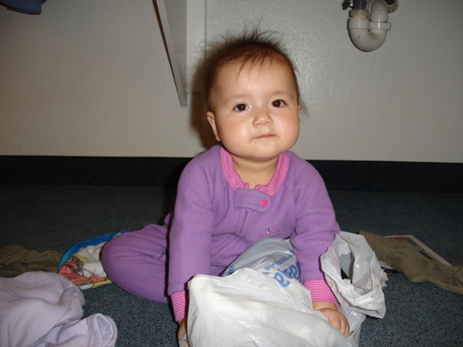 在旅館的這一個星期,Hayden真的乖的不得了,自己會自得其樂,找東西玩,果然是偶的好兒子,相反地,Hana就比較麻煩啦,因為房間小,她常常會煩悶到發脾氣,所以,只要能讓她安靜即使是一下下的舉動,像是把髒衣服從塑膠袋裏拿出來扔到地上,我們也會隨她啦.....