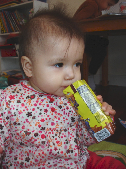 而小天使很厲害耶,居然會喝飲料,這種照片很有趣,好像三歲娃娃才做的事.可愛