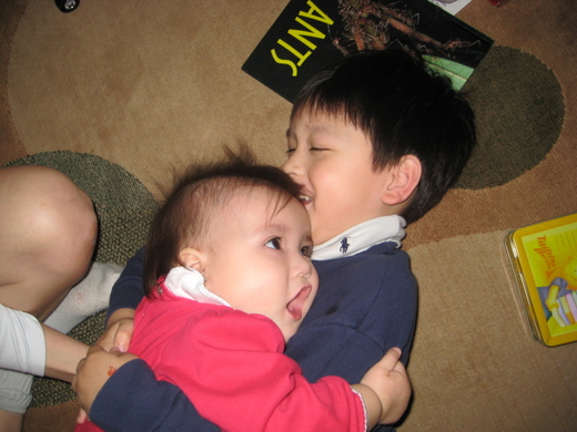 好可愛的小兄妹, 小天使真的很窩心耶,會用回"抱".
