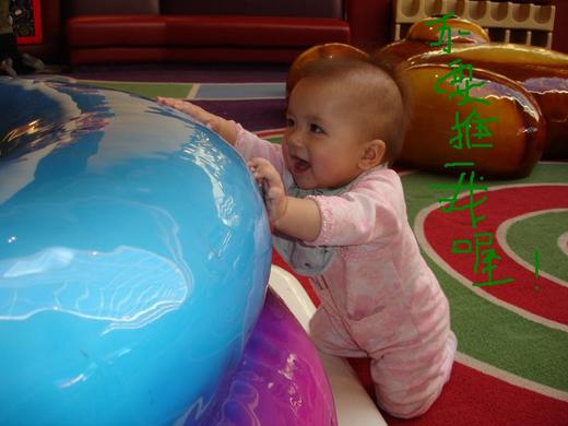 結果就在一瞬間,他突然伸出手硬是把Hana扶在玩具上的雙手撥開,Hana就這麼硬生生"碰"一大聲整個人往後撲倒,嚇一跳的她,哭的唏哩嘩啦的,小男生的媽媽雖然馬上就叫他說Sorry,可是小男生不但沒說,還一直笑........