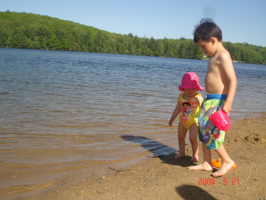 我們家姊姊(還不會游泳)第一次到海邊不管三七二十一就撲通跳下水(靠近沙灘的淺水區), 喝了幾口海水之後, 我以為她會收斂一點, 沒想到她姑娘一副不怕死的樣子, 繼續大玩特玩. 快嚇死我這旱鴨子的老娘. 還好我們家有救生員資格的把拔就在她身旁, 我才放心讓她盡情地玩. 我們家弟弟就乖乖地在海灘上玩他的沙堆! 他對那一大片海水一點兒也沒興趣! ㄚ那ㄝ差那麼多. 或許跟年紀有關吧!呵呵,妳家姐姐真的好有冒險精神喔!老實說,湖邊有沙灘我也是搬來麻州後第一次親眼看到,真的非常新奇,絕對跟無知沒關係,哈哈! 老媽子 於 2009/05/27 18:38回覆- 3樓. ㄟ波拉斯2009/05/26 15:21羨慕耶...