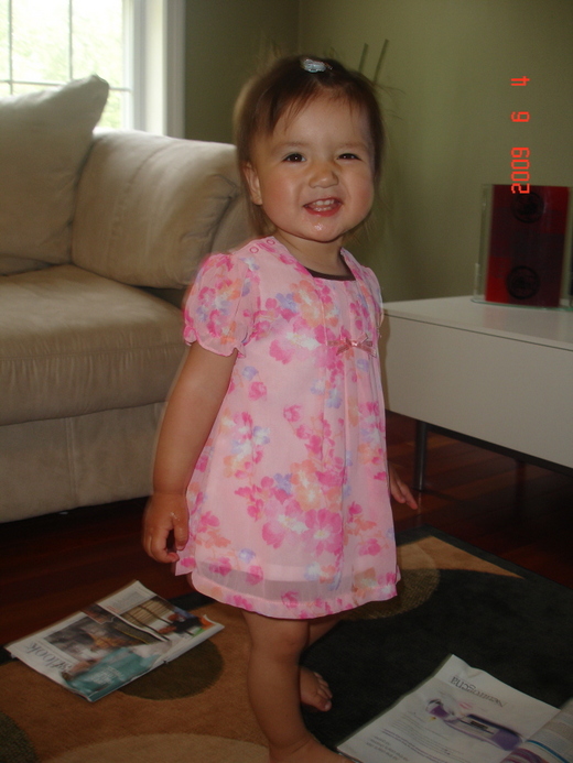 還好當媽的還是有良心的啦,偶爾也會讓她穿穿漂亮衣服,問題是,麻州最近不知怎麼了,每天都在下雨,冷的要命,出門還得穿長袖,所以,這些漂亮衣服,就只能暫時擺在衣櫃裏,等天氣好時,再多穿幾次囉!