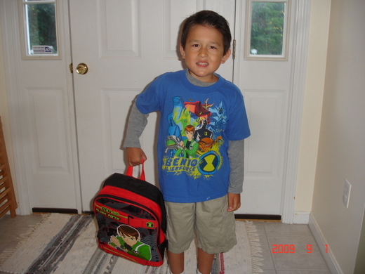 Hayden今天開始上小一了,好快喔,早上他去坐校車,還等不及的提早十分鐘出發,想到去年送他唸幼稚園時,捨不得的淚水一直在老媽子的眼裏轉啊轉,不過也還好有去年的經驗,今天看他上校車的時候,心裏也就沒有那麼難過了....