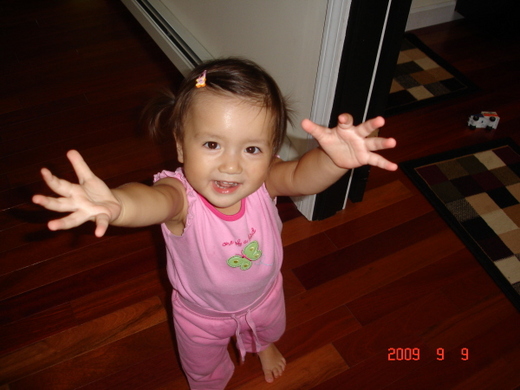 本來也是抱著姑且一試的心情,想說還是綁不起來的話就算了,沒想到竟然大成功,長這麼大頭一次綁了兩條"很短很短"的小辮辮的Hana,應該也是蠻開心的,因為她都沒有要把髪圈扯下來的意思.....(大概每天頂著鐵絲頭也累了吧!)