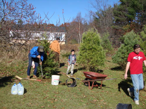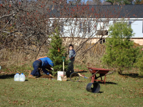 那麼, 桑樹不行, 冬天葉子會全部掉光, 可是針葉林長得超慢, 一開始就種大樹很貴, 除非向林務局訂購---好像一定的數量以上是免費的(政府鼓勵植樹)