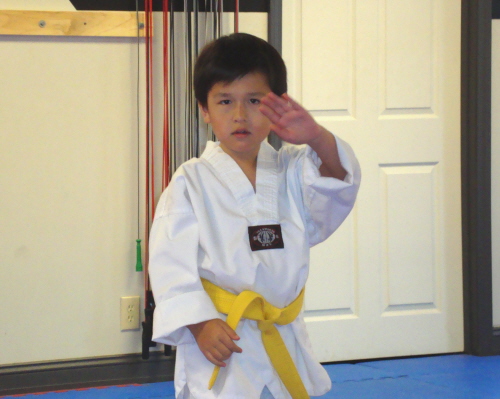 Hayden學到跆拳道已經整整一年了,從一開始的生澀害羞,沒事就回頭看看媽媽,到現在一上場充滿自信,每一套拳法都打的虎虎生風,連踢腿也從最初的不知道是在踢螞蟻還是什麼東東.....現在再看他踢的又高又有力,我真的很高興堅持讓他一直學下去,能看到他的成長。