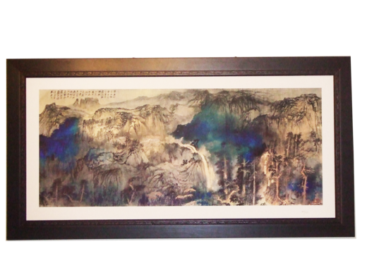 這張貼的畫篇幅太小, 難窺鬼斧神工, 遑辨山石林木