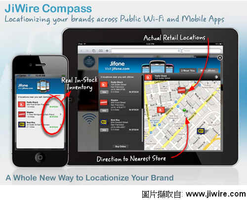 隨著越來越多的消費者啟用智慧型手機的應用程式,基於位置的功能和服務,將成為行動生活方式的代名詞。研究人員發現,使用筆記本電腦連接到公共 Wi - Fi 的人,下降了約 26 %;在同一時期 iPad 和其他平板電腦使用者增加了 10 %。報告顯示,全球 Wi - Fi 熱點已經超過 414,000 處,較 2010 年同期增加了 43 %。中國使用的 Wi - Fi 熱點首次超過美國,成為全球最大的市場。
