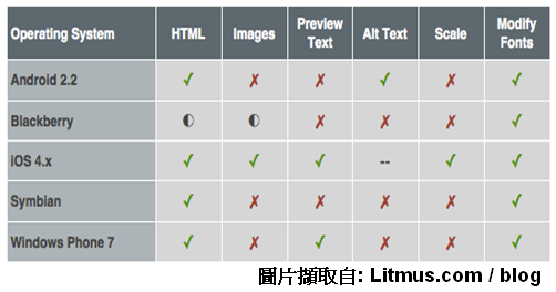 過去兩年,Web 電子郵件的市場佔有率,已經失去了 11 %。現在,行動電子郵件行銷應注意的是,確保行動設備上電子郵件的品質,行動操作系統能支援哪些圖像或文字?瞭解在手指可操作的小螢幕上,電子郵件所能呈現的效果究竟如何?
