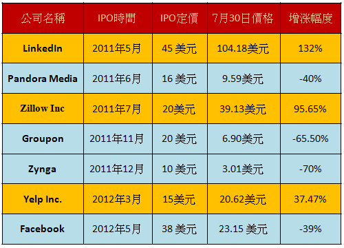 本周一 Facebook 股價再度下跌,收在 23.15 美元,由於營運模式及獲利展望不明確,導致網路泡沫傳言再起。IDC 研究報告指出,『現在,Facebook 不是下一個 Google,未來也不可能是。』,市值嚴重萎縮的網路公司,除了 Facebook 之外,還有社群遊戲公司Zynga、團購公司 Groupon 及音樂網站 Pandora Media 等。