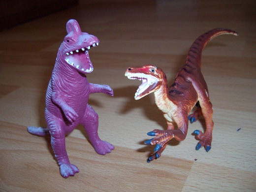 想想我小兒子斷母奶已久,又愈來愈會說話,就開始對他曉以大義:「媽媽白天忙了一天,晚上很累想睡覺,不可以一直把我吵起來唷」、「媽媽好可憐唷,半夜被哭聲吵醒好多次,都沒有睡飽......」但是這招並沒有博到同情,他還是依照他心情照哭不誤。所以我只好來硬的,改用「言語恐嚇」!就在前幾天在睡前的甜蜜溫馨的親子時間跟他說:「你今天晚上要好好睡覺,不可以在半夜把我吵醒,不然媽媽會變成一隻恐龍,生氣的打你屁股!」雖然他聽了以後馬上露出無辜的天使表情,我還是不放心的再問一次:「好好睡到天亮,知道嗎?」他點點頭,我也只能他一個Good night kiss,接著我就轉頭也給我大兒子一個吻,他卻很認真的把我剛剛說的話重複了一遍:「媽媽半夜被Ali吵醒,牙齒就會變得很尖,還會長出爪子,變成一隻恐龍,Uhaaaa......」看他表情豐富的表演著,原來我家老大一直在旁邊聽著,還在腦袋裡編織出像電影一樣的圖像了!