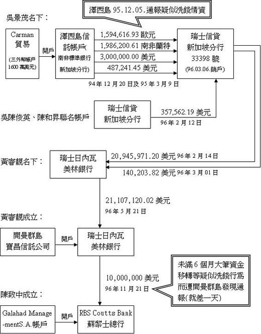 扁家洗錢流程圖,資料來源:台北地方法院葉盛茂瀆職案97.12.04.之判決書內容。