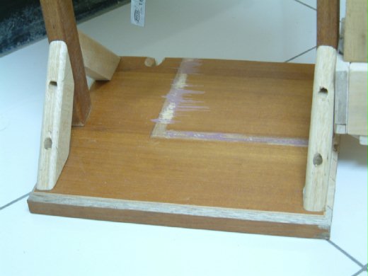 今天在施作過程中,發現原設計圖中沒考慮到像鋁尺.直尺.圓木條...等這類的木料或工具的存放位置,所以,臨時起意加入了直立的收納空間(我的個人相簿中都有詳細的照片唷!!)其中工具架底座的部份,大家有沒有認出來啊?!那就是我前一個未能完成的作品--除溼機活動台的那個底座啦....上個作品沒用到,剛好用在這個身上!