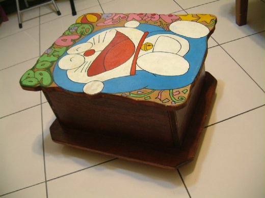 早期木工作品 -- 超口愛 多功能 多啦 A 夢 滑輪儲藏小木椅