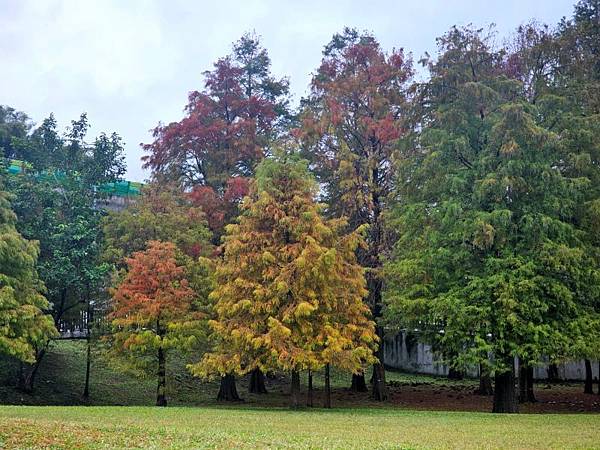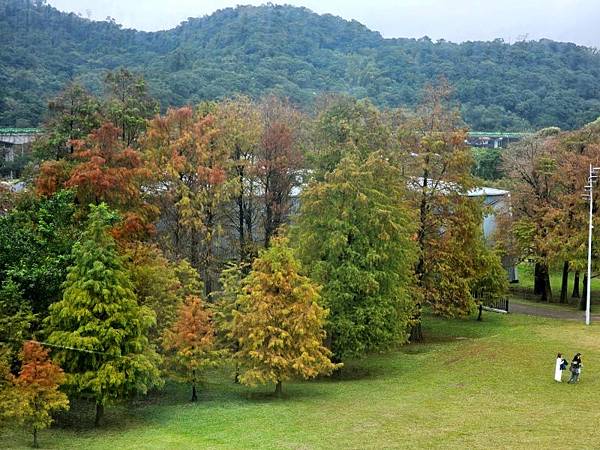 ↑捷運站內俯瞰落羽松,顏色層次感不錯,美。