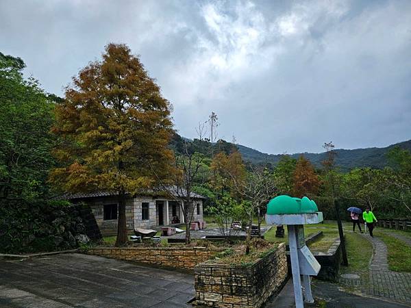↑路過石頭屋,這裡有幾棵落羽松,逗留一下。