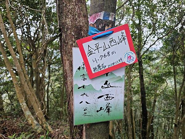 ↑11:15金平山西峰,高約768公尺,無基石,ㄙ2012-12-09那次可能有路過。