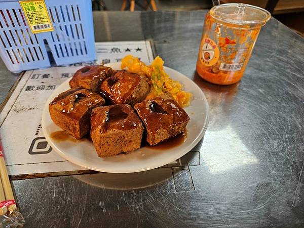 ↑15:58在停車處民宅旁吃臭豆腐,泡菜是黃金泡菜,一份70,好吃。