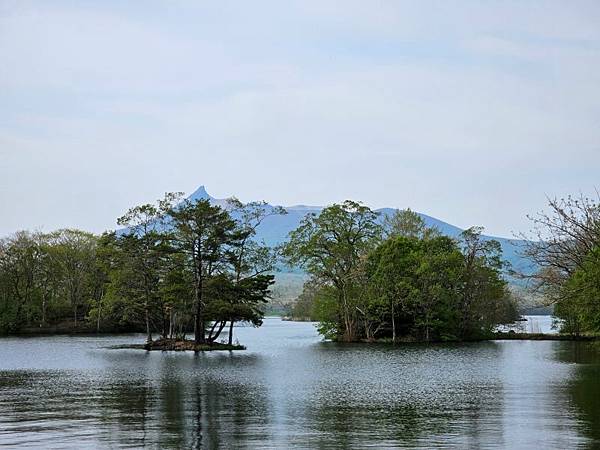 ↑大沼湖與駒ケ岳,大沼湖周長14公里,分布126座小島,建造了18座橋梁橫跨部分小島。