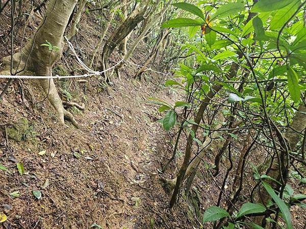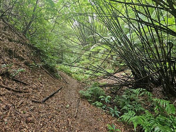 ↑11:15一進入登山道,草木茂盛,蚊子大軍出動,趕忙擦上防蚊膏。山徑沿著山腰腰繞,10幾分鐘後才開爬升。