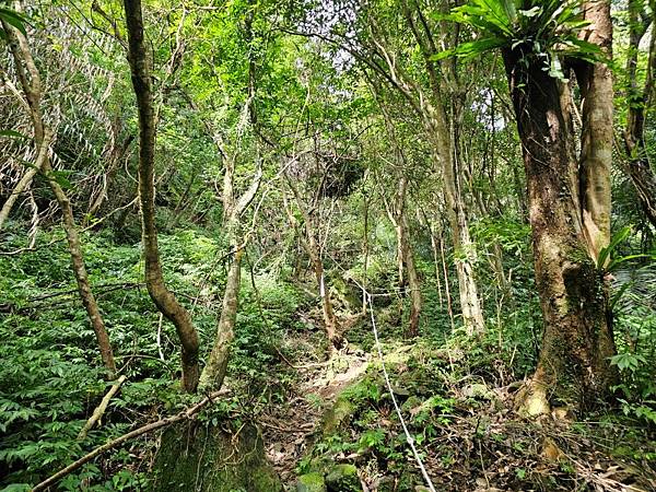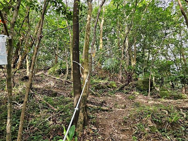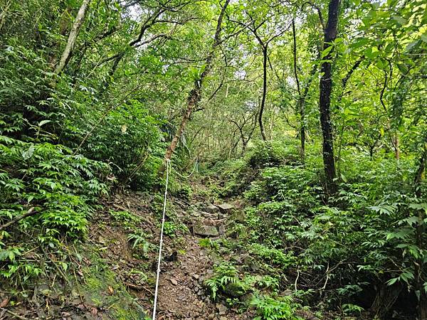 ↑08:10一路不斷的拉繩,爬柑腳城山的山徑也是蠻陡的。