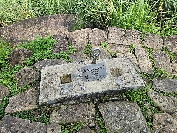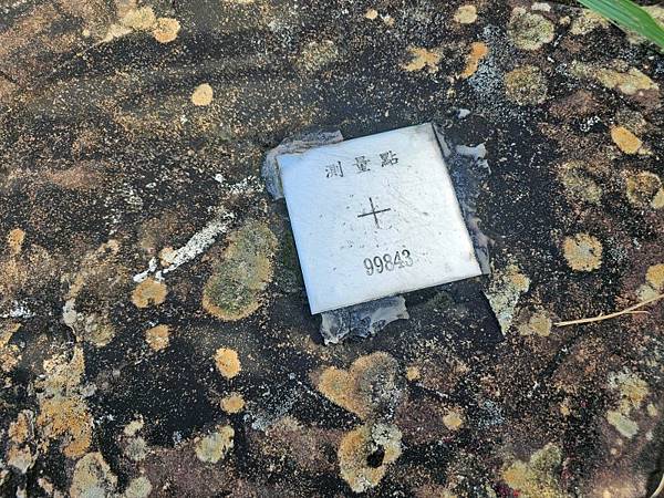 ↑小百岳大尖山,高460公尺,土地調查局圖根點,涼亭下方岩石上不鏽鋼測量點99843。